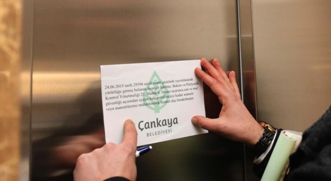 Belediye, Asansör İşletme, Bakım ve Periyodik Kontrol Yönetmeliği doğrultusunda asansör denetimlerini sürdürüyor. İlgili yönetmelik çerçevesinde İmar Müdürlüğü bünyesinde Asansör Koordinasyon Birimi kuran belediye, asansör denetimlerini Makine Mühendisleri Odası ile işbirliği içinde yürütüyor. Denetimlerde asansörlerin durumu, kırmızı (kullanılamaz), sarı (güvensiz), mavi (hafif kusurlu) ya da yeşil (güvenli) etiket yapıştırılarak belirtiliyor. 2016 yılı içinde 2 bin 668 binada asansör denetimi yapan Çankaya Belediyesi, kusurlu bulunan 2 bin 51 asansörü mühürledi. Verilen süre içinde düzenlemeleri yapan 844 asansörün ise mührü bozuldu. Belediye yetkilileri, apartman yönetimlerinin asansör güvenliği konusunda duyarlılık göstermeleri gerektiği uyarısını yaptı.
