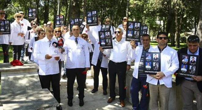 Eczacılar, Ankara Üniversitesi Tıp Fakültesi Cebeci Hastanesi Fizik Tedavi Bölümü’nde geçen yıl 24 Haziran günü öldürülen meslektaşları için dün anma töreni düzenlediler.