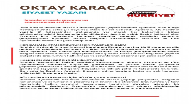 Erzurum milletvekili olarak 3 dönem görev yapan İbrahim Aydemir, Plan Bütçe Komisyonu'nda sekiz yıl boyunca etkin bir rol üstlendi. OKTAY KARACA YAZDI…